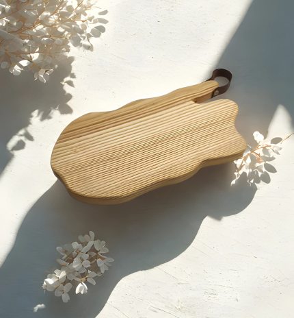 Chaque planche en bois, unique par sa forme, est idéale pour découper ou présenter vos aliments. Avec son manche et son petit bout de cuir pour l’accrocher facilement, elle allie praticité et style pour sublimer vos apéros et vos moments gourmands.