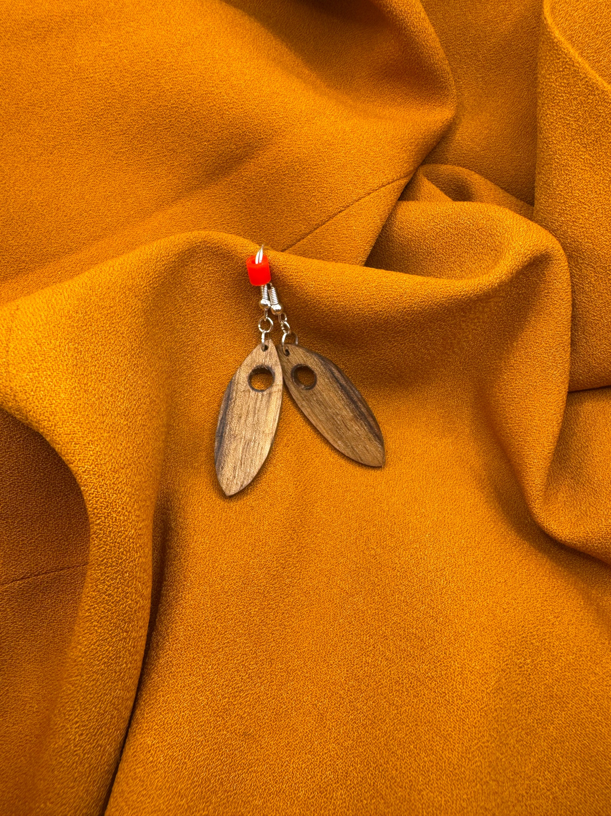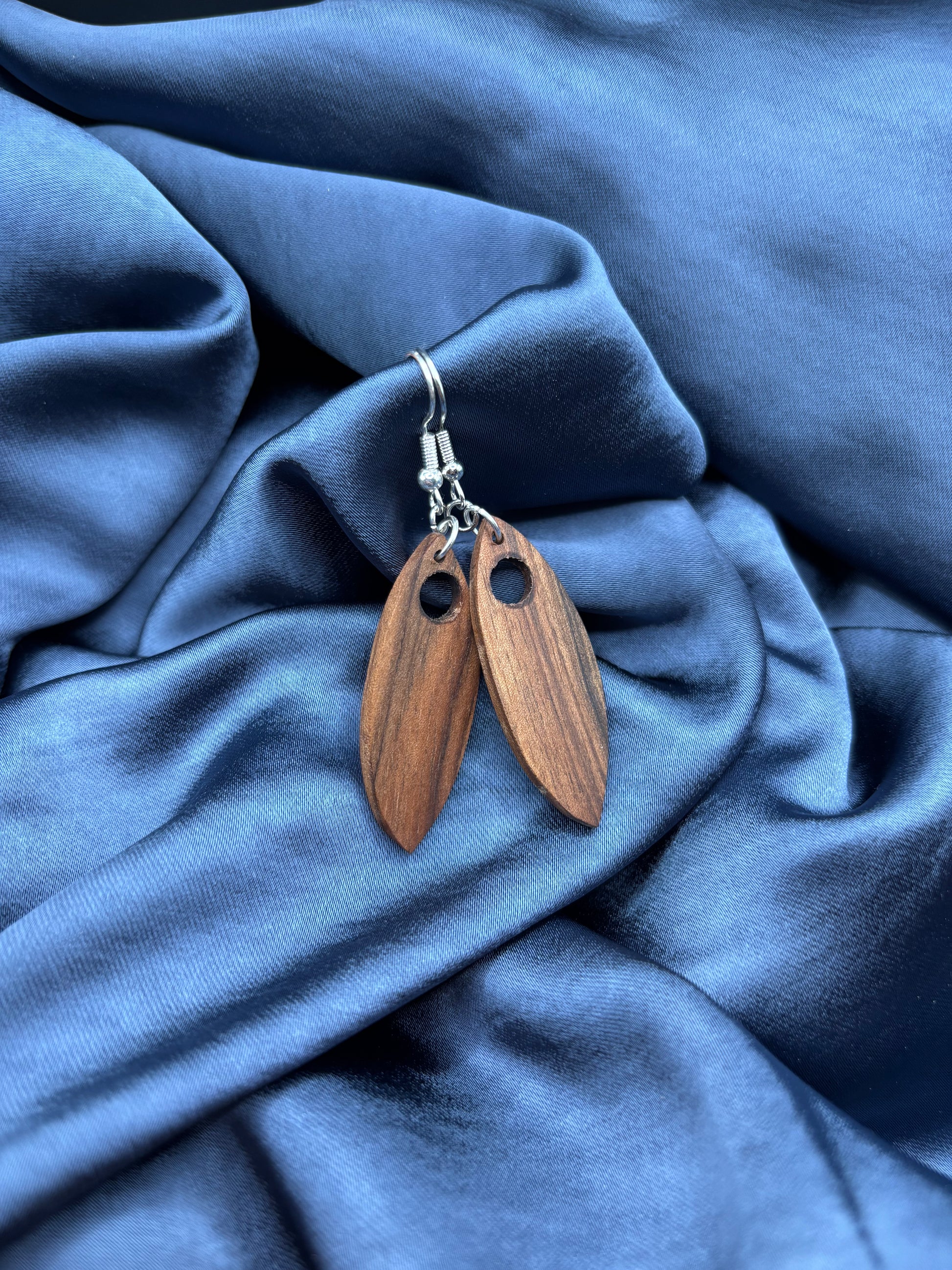 Les boucles d’oreilles sont réalisées en bois de noyer, un bois noble et chaleureux, apprécié pour son aspect naturel.