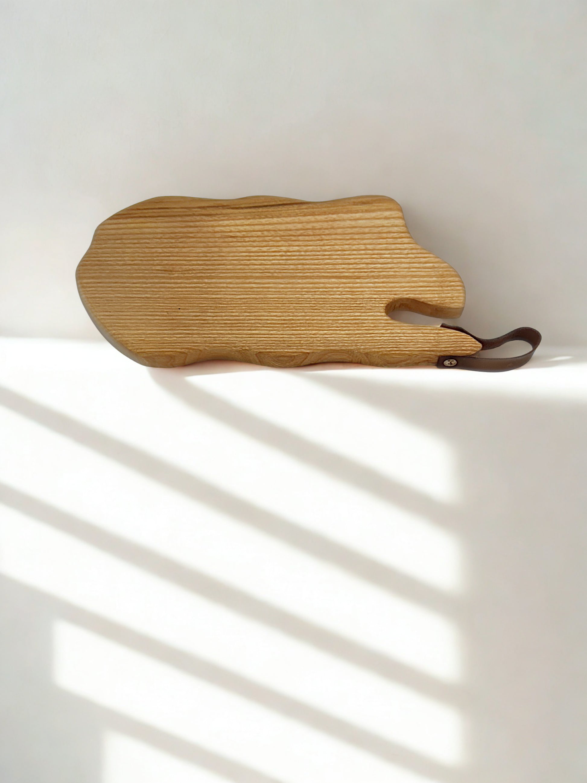 Planche en frêne massif français 🌳, taillée dans une seule pièce pour offrir un rendu solide, élégant et unique. Le veinage et les courbes naturelles du frêne rendent chaque planche différente 😌