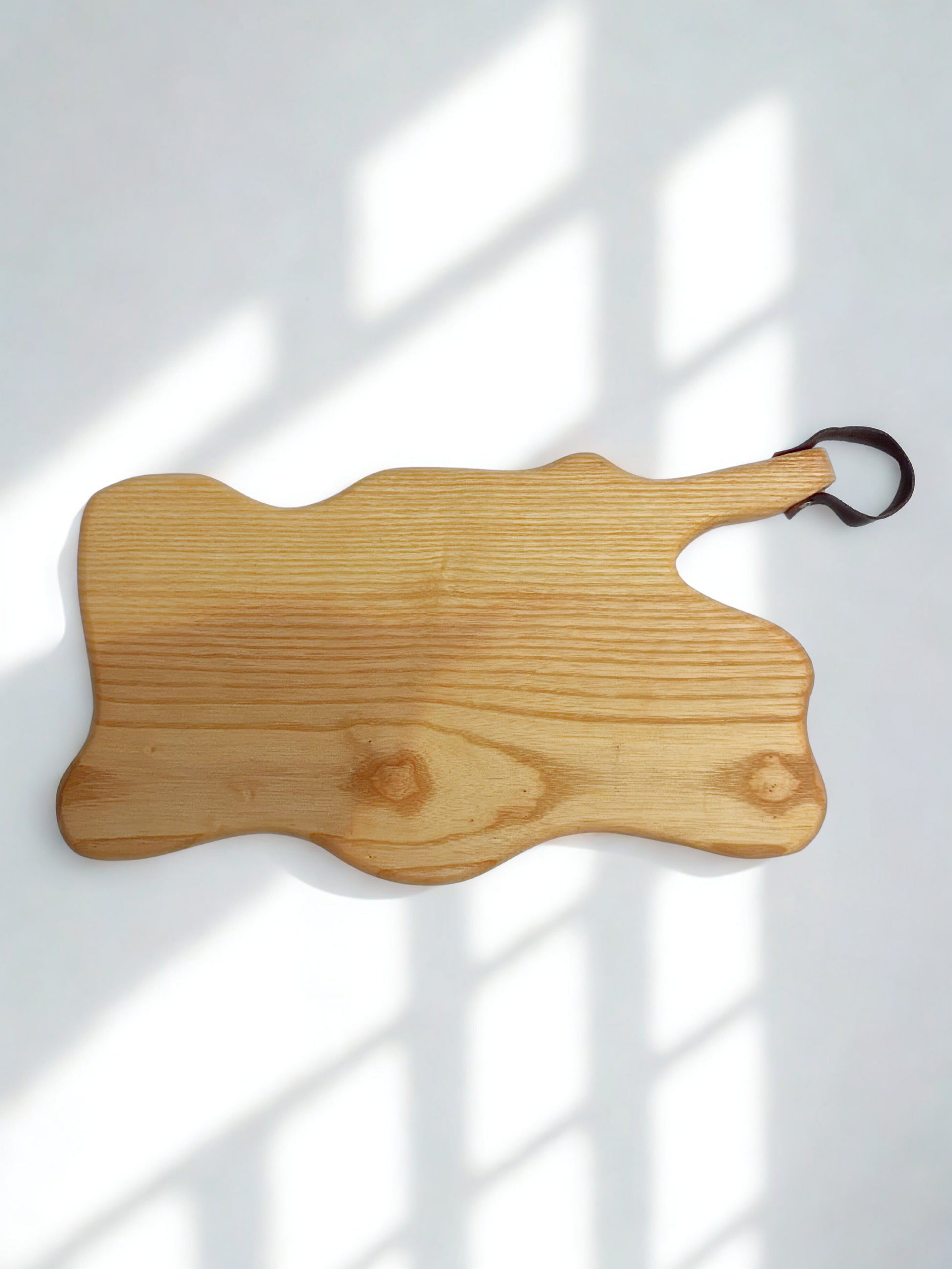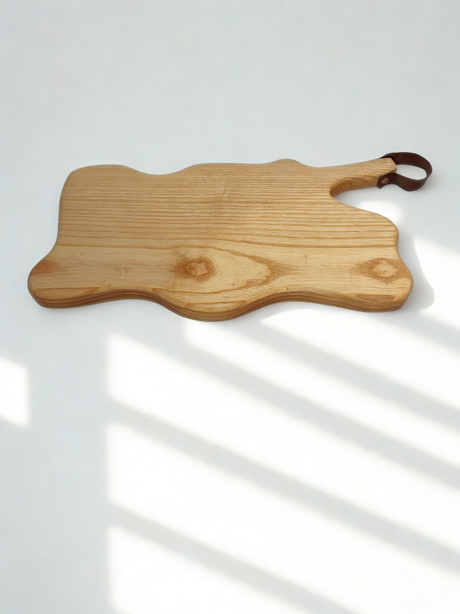 Planche en frêne massif français 🌳, découpée dans une seule et même pièce pour offrir un rendu solide, chaleureux et élégant. Le veinage du frêne donne un style unique à chaque planche 😌