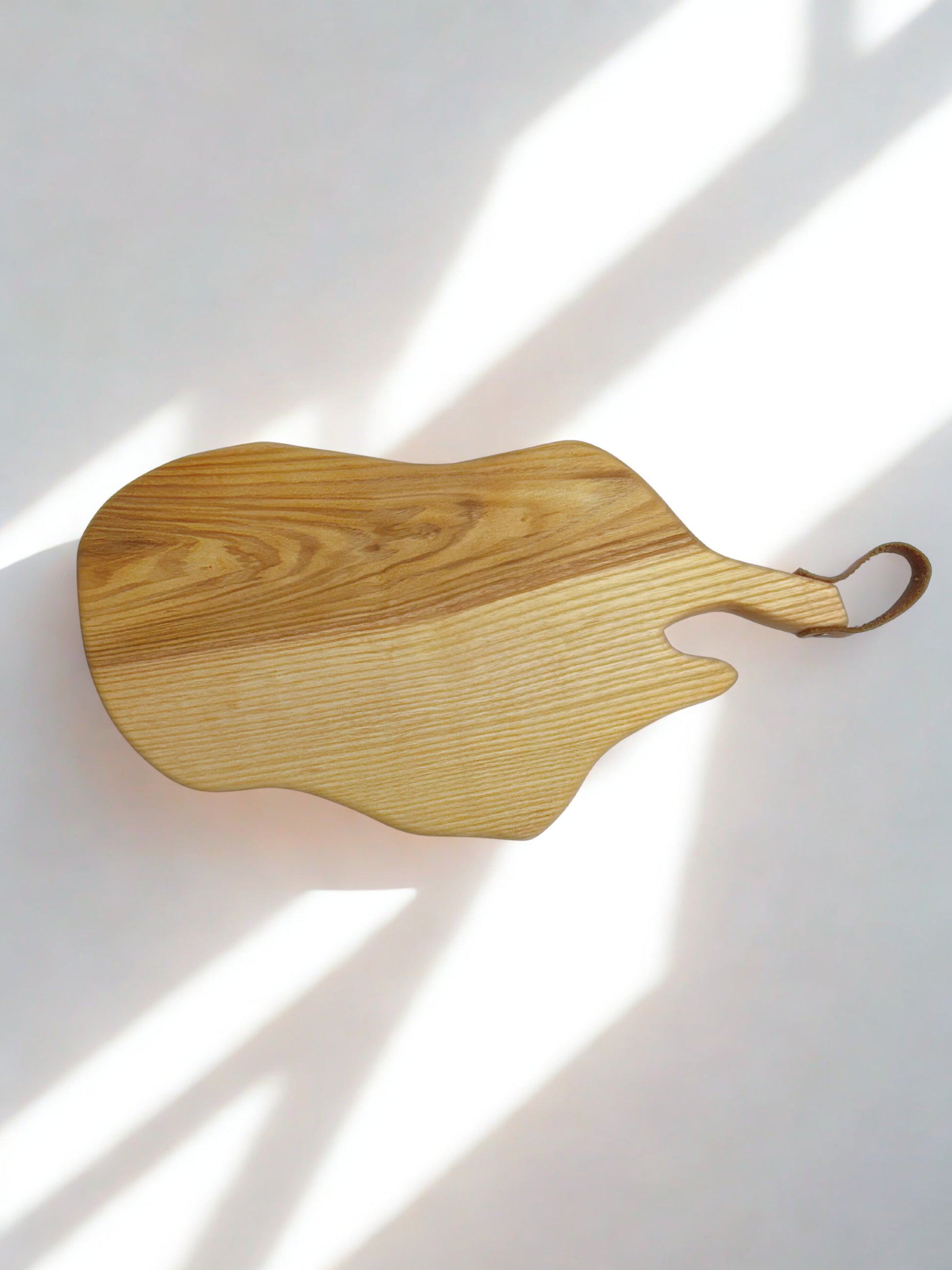 Planche en frêne massif français 🌳, découpée dans une seule et même pièce pour offrir un rendu solide, chaleureux et élégant. Le veinage du frêne donne un style unique à chaque planche 😌